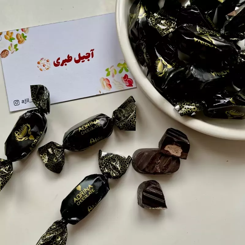 محصول شرکت خوب آدرین تلخی در حدود شکلات باراکا است اما با قیمت مناسب تر مناسب پذیرایی و سرو همراه قهوه و چایی مناسب افراد قندی و رژیمی سرشار از آنتی اکسیدان، مقوی قلب و مغز، محافظت پوست، بهبود فعالیت فکری، پیشگیری از فراموشی، چربی سوز و بسیاری خواص مفید دیگر با یک تکه از این شکلات به خودت انرژی بده